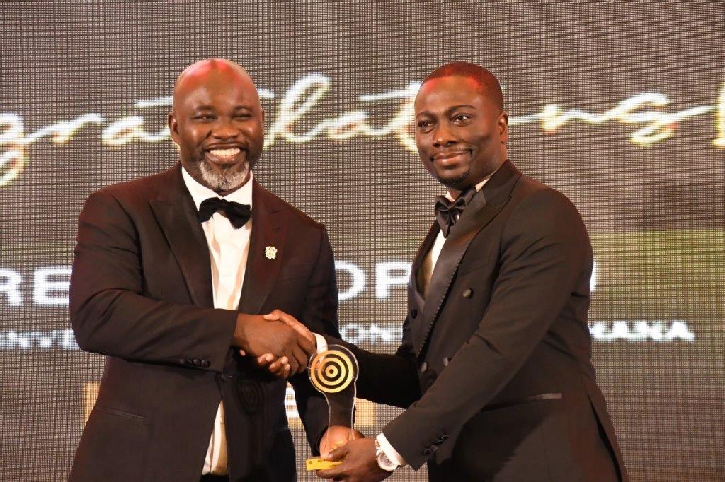 Jeremiah Opoku, (R) Manager Corporate Communications receiving the overall Best Investor Relations Practice Award